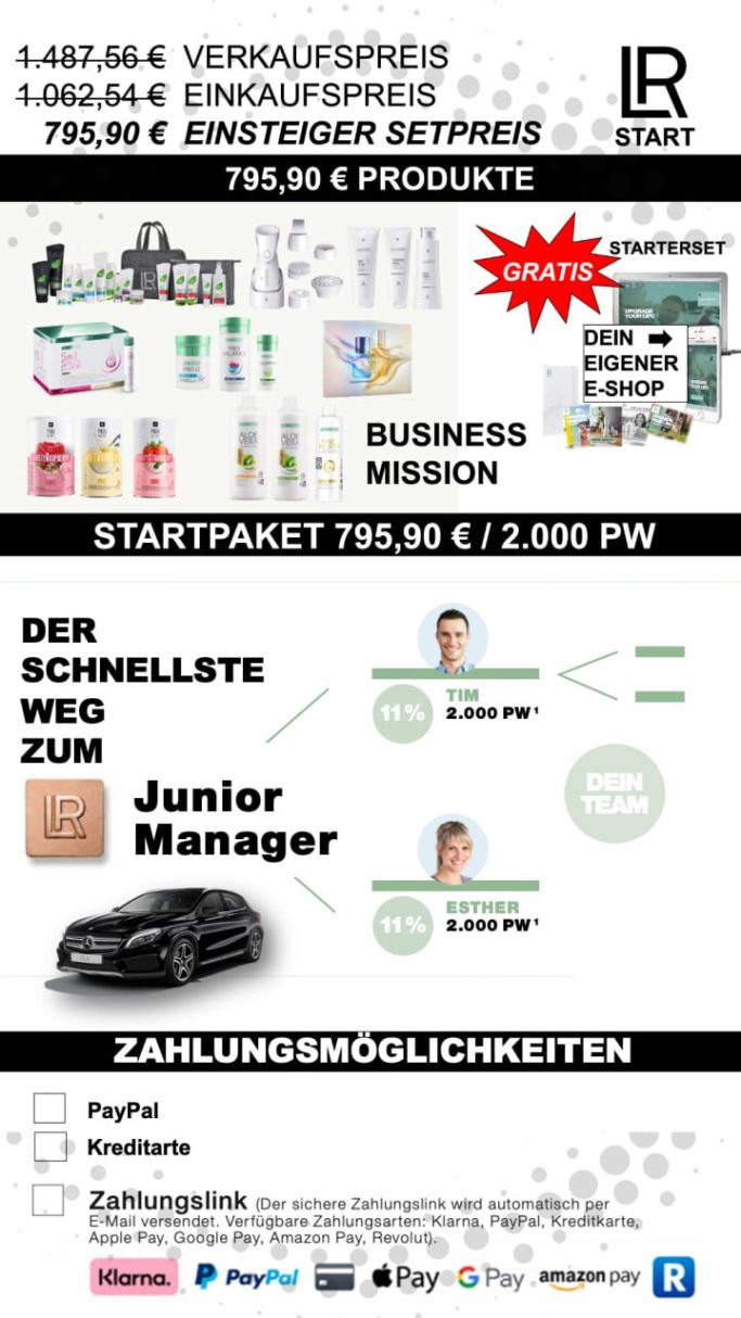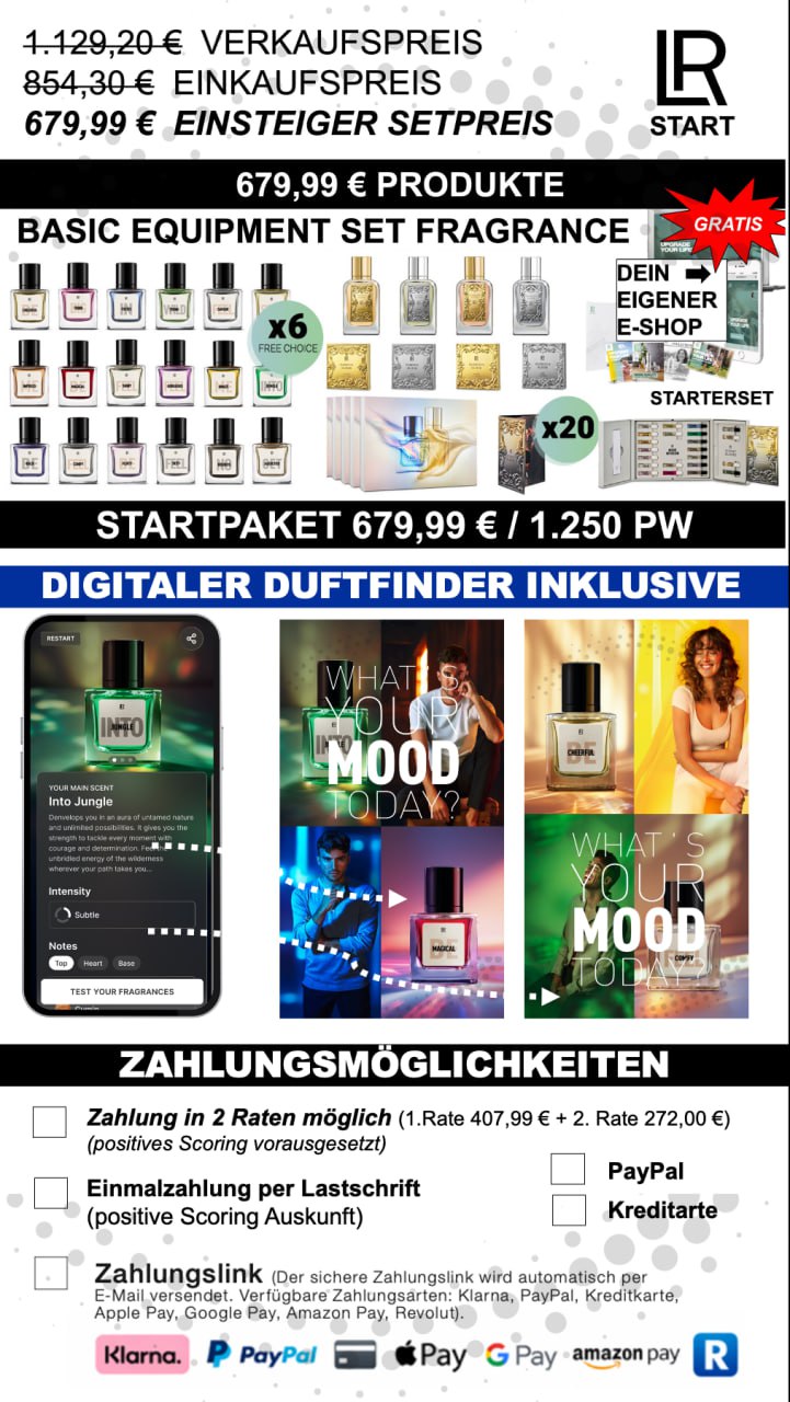 Mit nur 99,90 € Erstbestellung legst du sofort los – ganz ohne versteckte Gebühren, Laufzeiten oder Risiko. Teste die Produkte selbst, teile deine Begeisterung mit anderen und verdiene vom ersten Tag an.